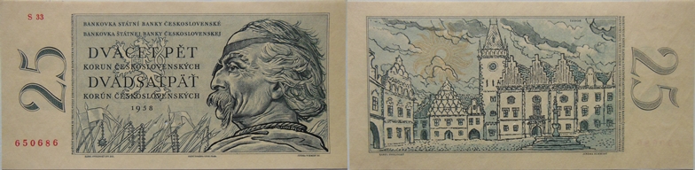 25 Korun 1958, 140x69mm, s.S33, BHK-93, perfor 3 malé dírky