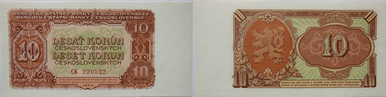 10 Korun 1953, 129x65mm, s.CK, BHK-89b,