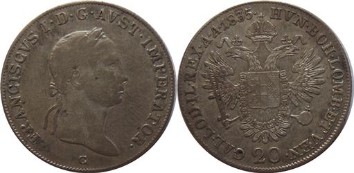 20 krejcar 1835, Praha - Hippmann, MKČ 2040, mír setř portret