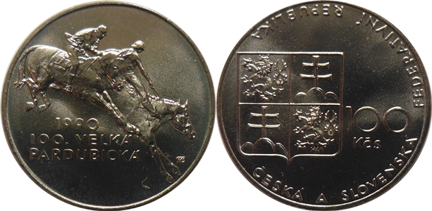 100 Kčs 1990 - Nov.180 - 100. výročí konání závodů Velké Pardubické - v kapsli
