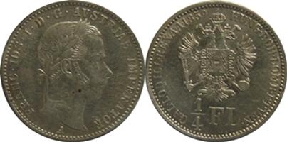 1/4 Zlatníku 1858 "A" - Nov.33, dr škr v ploše, patina
