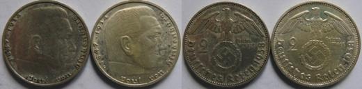 2 Mark 1938 E,G - KM.93, 2x 7,93g Ag(625/1000)...2ks, dr škr v ploše