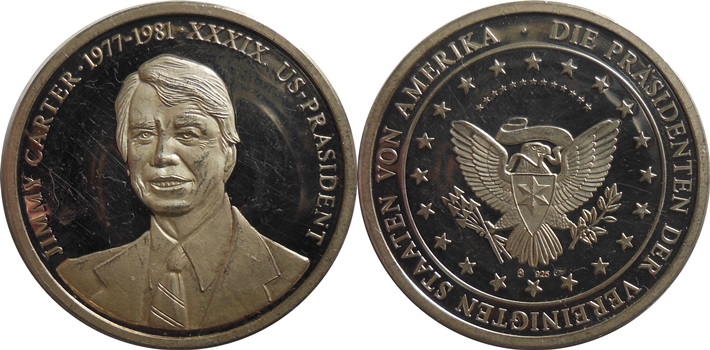 US.prezidenti - Carter XXXIX., puncovaná medaile fy.Gode, Ag (925/1000)...15g, 30mm, dr rysky v ploše
