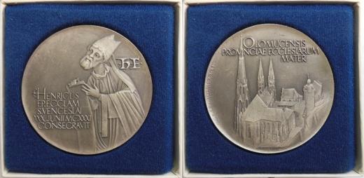 Grmela a Doležal - 850.výročí posvěcení olom.katedrály sv Václava biskupem Jindřichem Zdíkem (1981) - sign, pat.postříbřený bronz, 60mm, pův etue