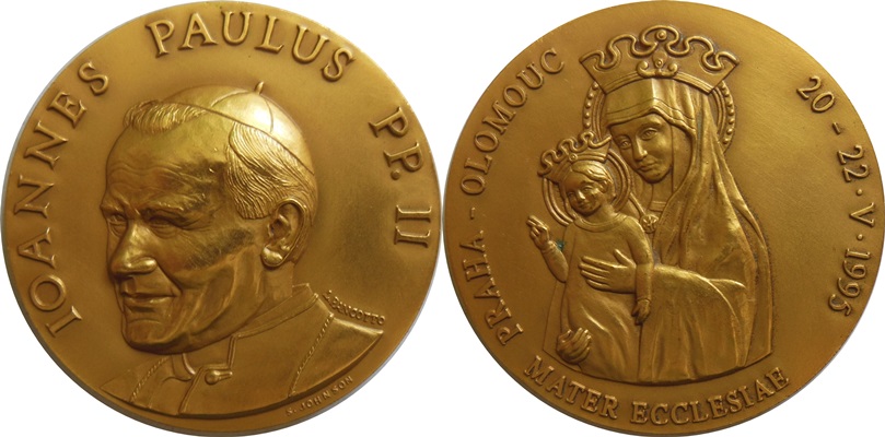 Pancotto a Johnson - Návštěva Jana Pavla II. v Olomouci a Praze 1995 - sign, pat.zlacený bronz, 50mm, pův etue