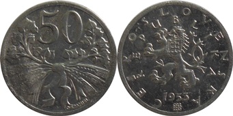 50 Haléř 1953 =RR= - Nov.39, vada střížku v Av