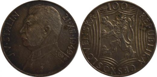 100 Kčs 1949 - Nov.49, 70.výročí narození J.V.Stalina, O.Španiel, Ag(500/1000), 14g,