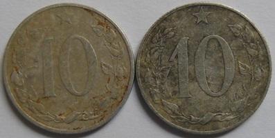10 haléř 1953 - Nov.61, obě varianty - Leningrad(světlejší)=R= a Kremnica ...2ks