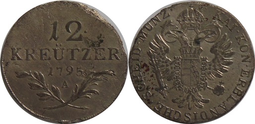 12 krejcar 1795 A - Vídeň - Nov.27, okrájen hrana,