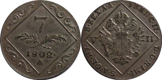 7 krejcar 1802 A, Vídeň - Nov.26, stopy přeražby