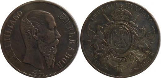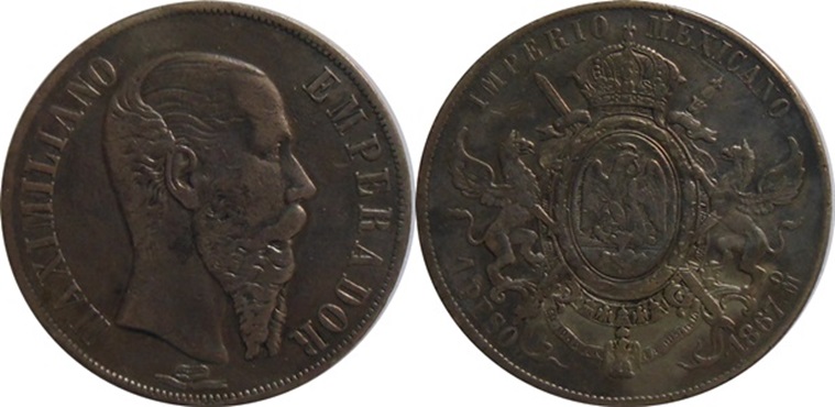 Maxmilian I. 1864-1867, 1 Peso 1867 Mo, Mexiko City - KM.388.1,...26,83g Ag(93/1000), dr škr v ploše, patina
