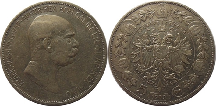 5 Korun 1909 / Schwartz- Nov.83, dr škr v ploše