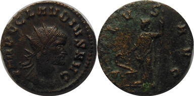 AE Antoninianus - R: Salus drží žezlo a krmí hada " SALVS AVG", Řím, R.I.C. 98