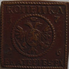 Kateřina I. 1725-1727, 1 kopějka 1726 - Bit.139, 24x24, jednostranná, KOPIE