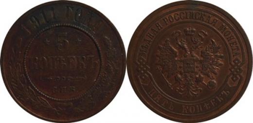 Mikuláš II. 1894-1917 - 5 Kopějek 1905 SPB (Cu) - Y.12.2, raž lesk v Av