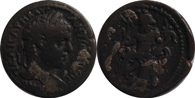 Elagabalus 218-222 - Billon Tetradrachma...10,75g - BMC.1509, K.56.48, Av: poprsí císaře, opis / Rev: sedící Nilus drží rákos a roh hojnosti