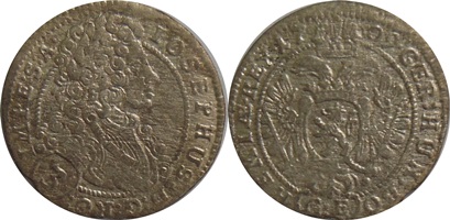 3.krejcar 1709, Praha - Egerer, MKČ 1721, pórovitý střížek, mělká ražba,