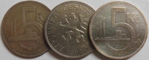 5 Korun 1929 a 30 (2x) - Nov.9, 3x7g Ag(500/1000), Konvolut...3ks