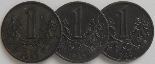 1 Kč 1942,43 a 44 - Nov.23, ...3ks
