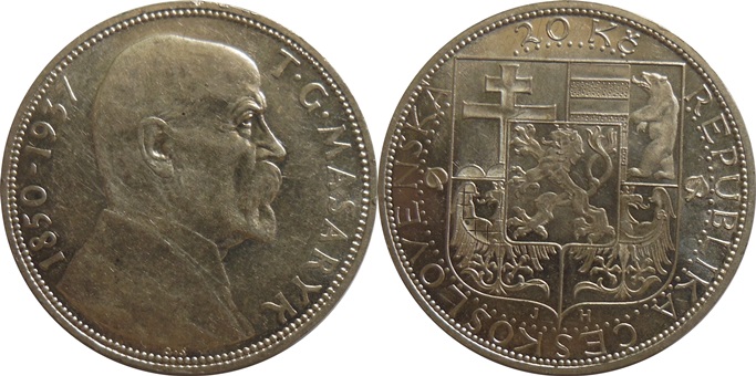 20 Kč 1937 TGM - Nov.14, 12g Ag(700/1000)