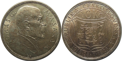 10 Kč 1928 TGM - Nov.13, 10g Ag(700/1000)
