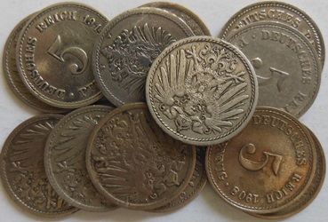 5 Pfennig - J.12, malá a velká orlice ...13ks