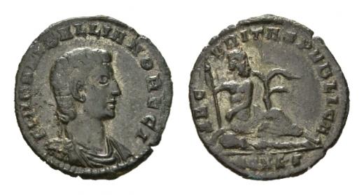 Hannibalianus Rex Regum, 335-337 Follis, Constantinople circa 336 - 337, Æ 16mm., 1.32g. FL HANNIBALIANO REGI Draped and cuirassed bust right. Rev. SECVRITAS PVBLICA Euphrates reclining right, holding scepter and overflowing urn; reeds behind; in exergue CONSS. RIC 147. LRBC 1034.Rare. Green patina and good very fine. Privately purchased from Tom Vossen.