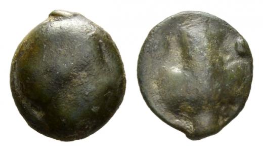 Sicily, Selinus Tetras 450 - 440, Æ 18mm., 6.83g. Head of river-god right. Rev. Selinon leaf; three pellets (mark of value) around. Calciati 8. Price, Selinus 10.Green patina. Fine