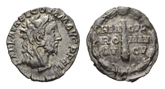 Commodus, 177-192 Denarius circa 192, AR 17mm., 2.14g. L AEL AVREL COM-M AVG P FEL Head right, wearing lion skin headdress. HER-CVL / RO-MAN / AV-GV in three lines across field, divided by club; all within wreath. RIC 251. C 190. BMC 339.Extremely fine/good very fine.