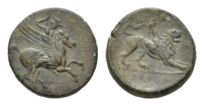 Acarnania, Leucas Bronze circa 350-300, Æ 17mm., 3.82g. Bellerophon right. Rev. Chimaira right. BMC 176,47. BCD Akarnanien 242.