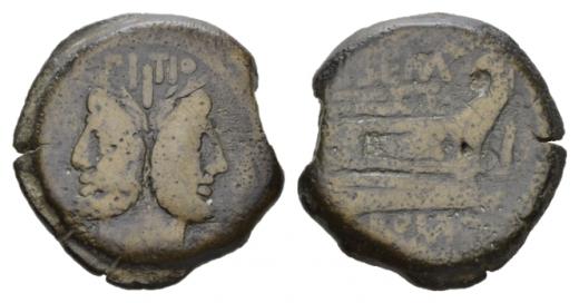 L. Sempronius Pitio As circa 148 - Ex I. Vecchi sale 3, 1996, 434., Æ 33mm., 27.57g. Laureate head of Janus; above, mark of value between PI – TIO. Rev. L·SEMP Prow right; before, mark of value and below, ROMA. Babelon Sempronia 3. Sydenham 403. Crawford 216/2a.
