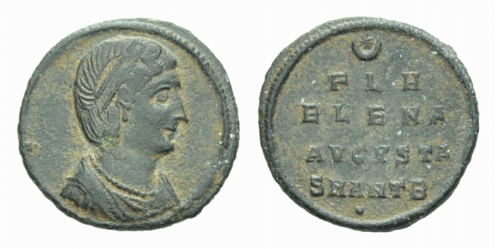 Helena, mother of Constantine Æ3 Antiochia circa late 324-early 325, Æ 18mm., 1.98g. Diademed and draped bust r. Rev. Star over crescent / FL H / ELENA / AVGVSTA / SMANTB in five lines. C 2. RIC 61. LRBC 1344.