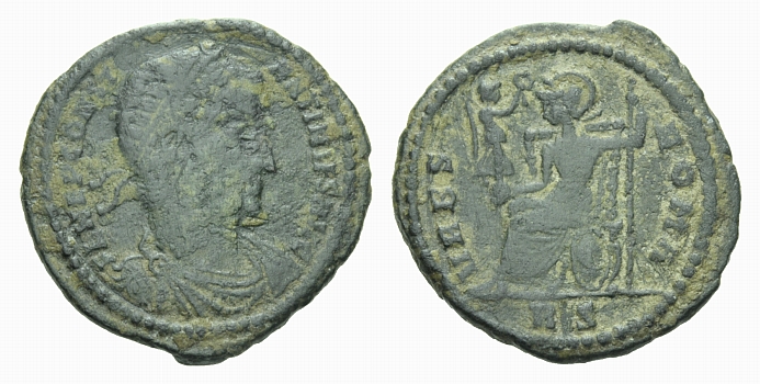 Nepotian, 3rd – 30th June 350 Æ3 Rome circa 350, Æ 26mm., 6.71g. FL NEP CONST – ANTINVS AVG Rosette-diademed, draped and cuirassed bust right. Rev. VRBS – ROMA Roma seated l. on shield, holding Victory on globe in r. hand and sceptre in l.; in exergue, R S. C 4. RIC 203. LRBC 644.