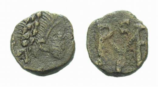 Libius Severus, 461-465 Æ4 circa 461-465, Æ 9mm., 0.77g. Pearl-diademed head r. Rev. Roma in monogram within wreath. RIC 2715. LRBC 871.