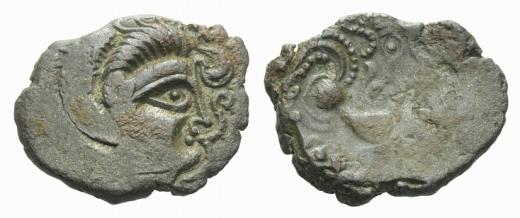 Celtic, Stater Armorica I century, billon 24mm., 4.20g. Head right with epsilon-shaped nose and hair in waves. Rev: Horse running right; above, whorl and little boar right below; before, vexillum. De la Tour 6270.