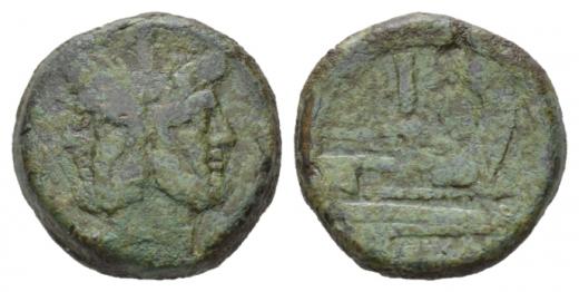 As circa after 211, Æ 32.5mm., 42.16g. Laureate head of Janus; above, mark of value. Rev. Prow r.; above, mark of value and below, ROMA. Sydenham 143. Crawford 56/2.