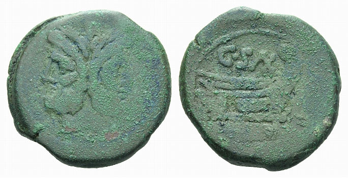 C. Cluvius Saxula As circa 169-158, Æ 34mm., 28.65g. Laureate head of Janus; above, mark of value. Rev. Prow r.; above, C·SAX ligate and before, mark of value. Below, ROM[A]. Babelon Clovia 6. Sydenham 360. Crawford 173/1.