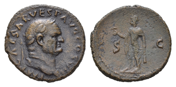 Vespasian, 69-79 As circa 76, Æ 27mm., 10.42g. IMP CAESAR VES-P AVG COS VII Laureate head right. Rev. Spes advancing left, holding flower and raising hem of skirt; in field S-C. C 457. RIC 894. BMC 725. CBN 757.