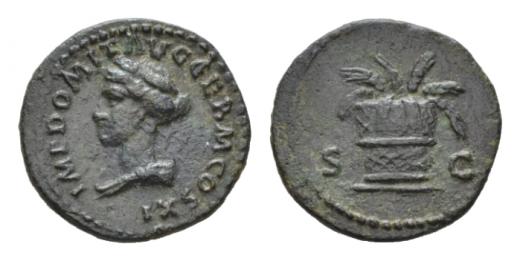 Domitian, 81-96 Quadrans circa 85, Æ 18.5mm., 2.40g. IMP DOMIT AVG GERM COS XI Draped bust of Ceres l. Rev. Basket with corn-ears. C Domitia 14. RIC 316 BMC 321 note. CBN 348.