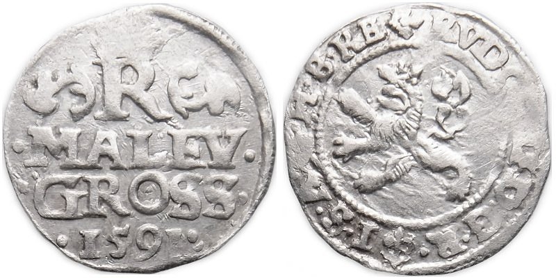 Malý groš 1591, Praha - Ercker, 0.87g, MKČ.336a