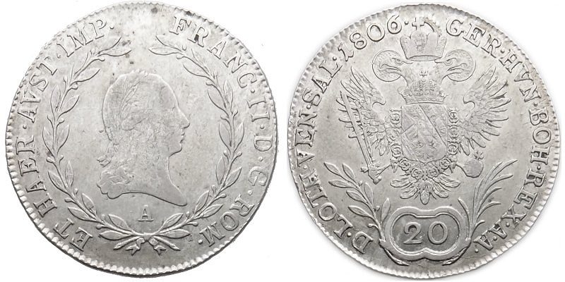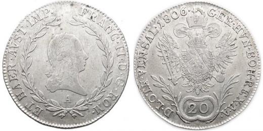 20 Krejcar 1806 A, 6.63g, Früh.270