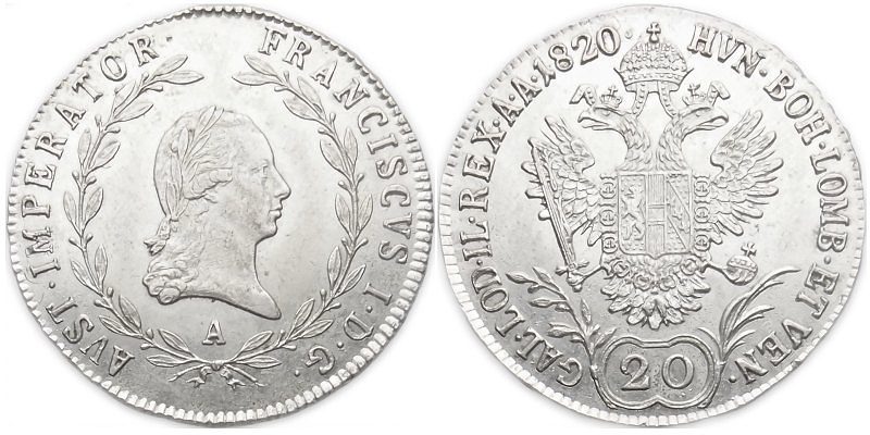 20 Krejcar 1820 A, 6.70g, Früh.327