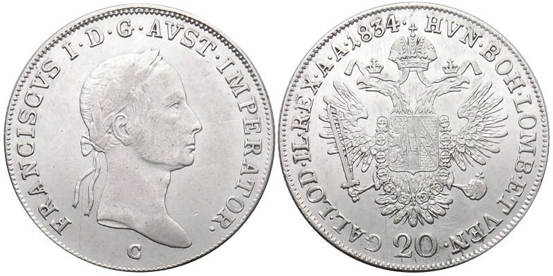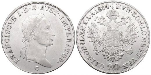 20 Krejcar 1834 C, 6.65g, Früh.389