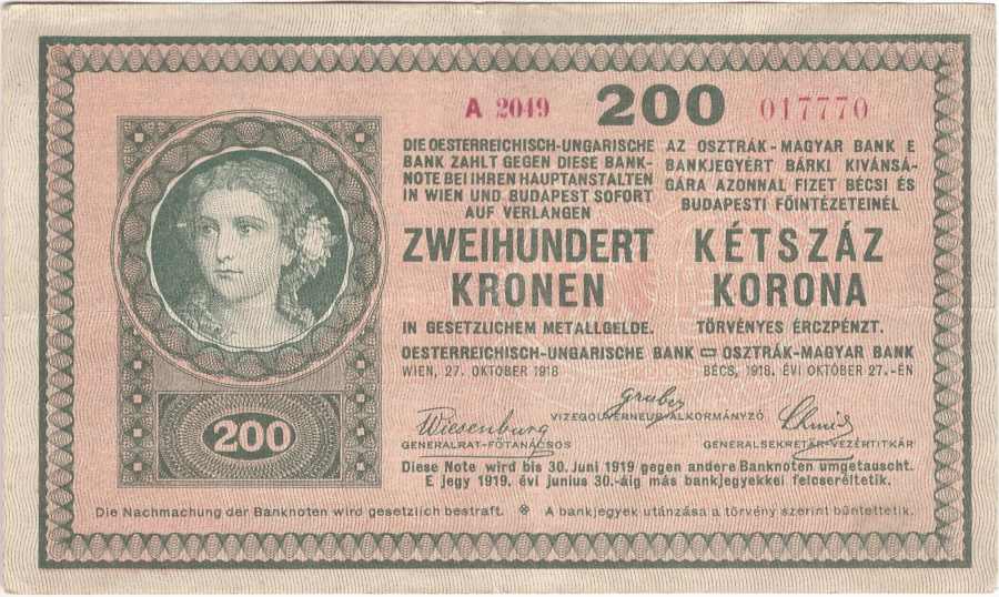 200 Koruna 27.10.1918, serie A2049, Pick.24