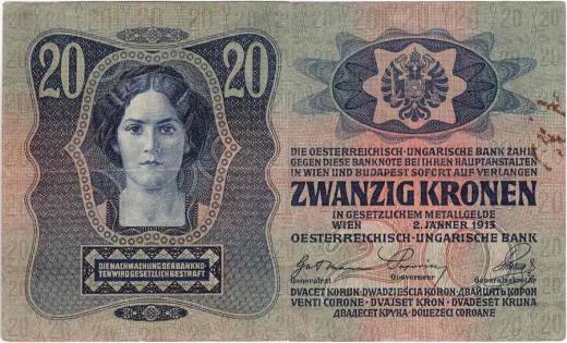 20 Koruna 2.1.1913, I. vydání, série 2252, kolkovaná, Baj.2