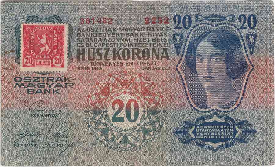 20 Koruna 2.1.1913, I. vydání, série 2252, kolkovaná, Baj.2