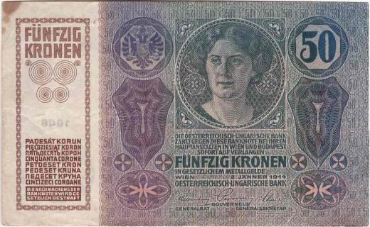 50 Koruna 2.1.1914, serie 1048, kolkovaná, Baj.4
