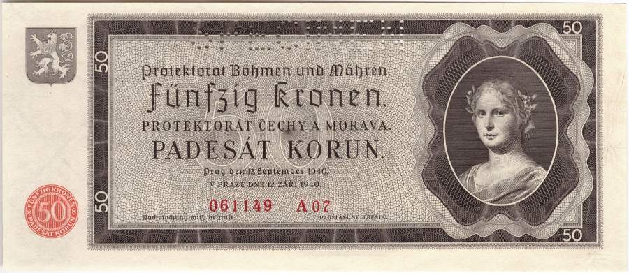 50 Koruna 12.9.1940, serie A07, perforace SPECIMEN, Baj.34