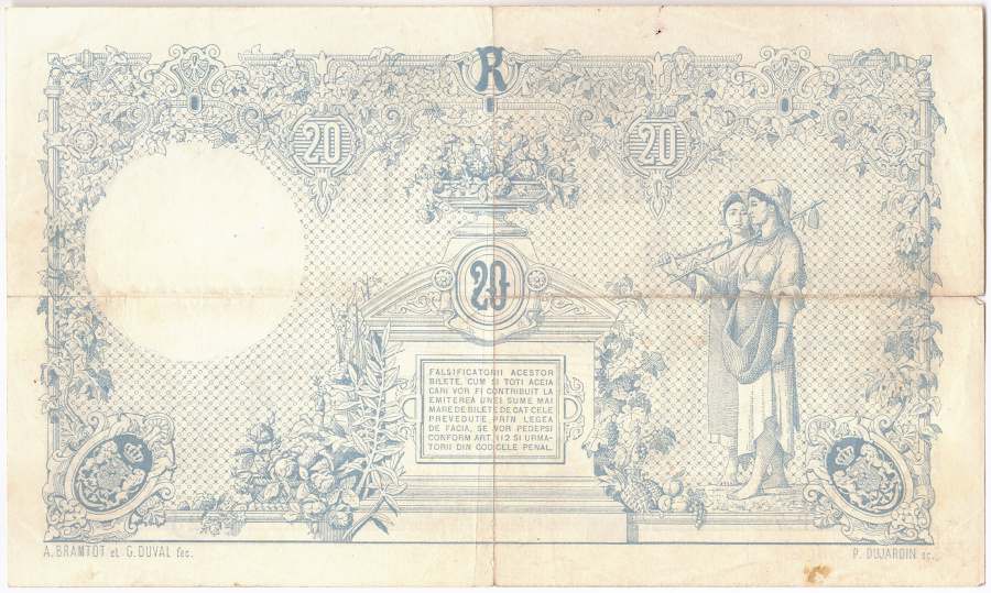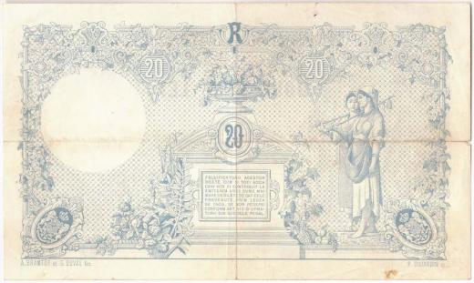 20 Lei 12.6.1877, Pick.3b, 4x natr, velmi vzácná bankovka ve slušném stavu