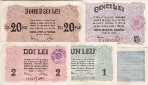 Rumunsko, Německá okupace, 50 Bani, 1, 2, 5, 20 Lei 1917